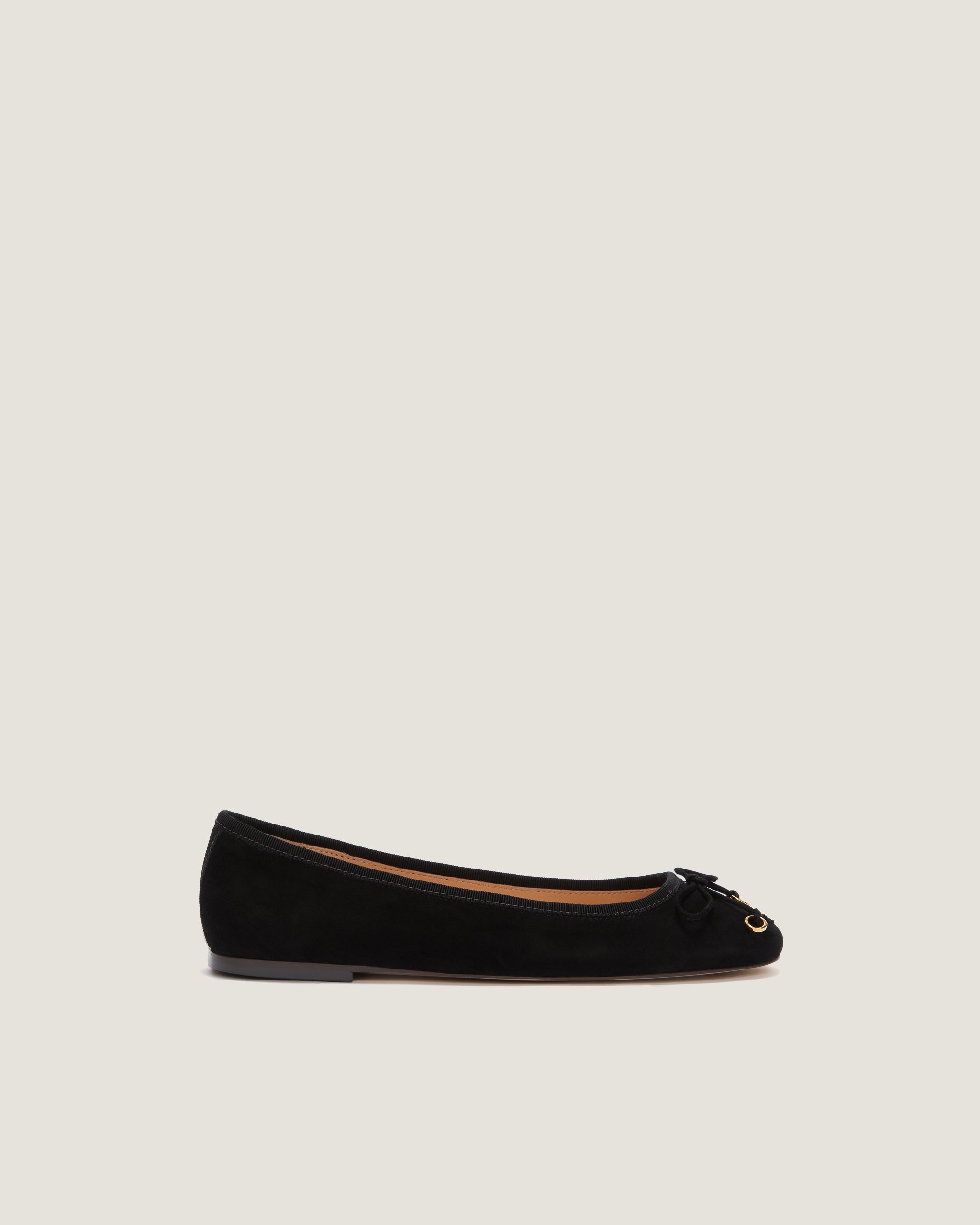 Lou es una bailarina clásica en ante negro adornada con un delicado lazo. Suave y sofisticada, presenta una construcción “sacchetto” sin costuras, una puntera cuadrada y una plantilla acolchada. Un esencial moderno y atemporal para el uso diario.