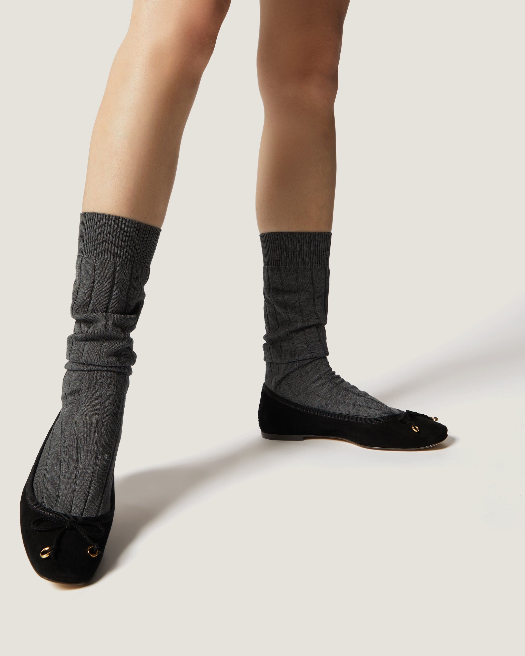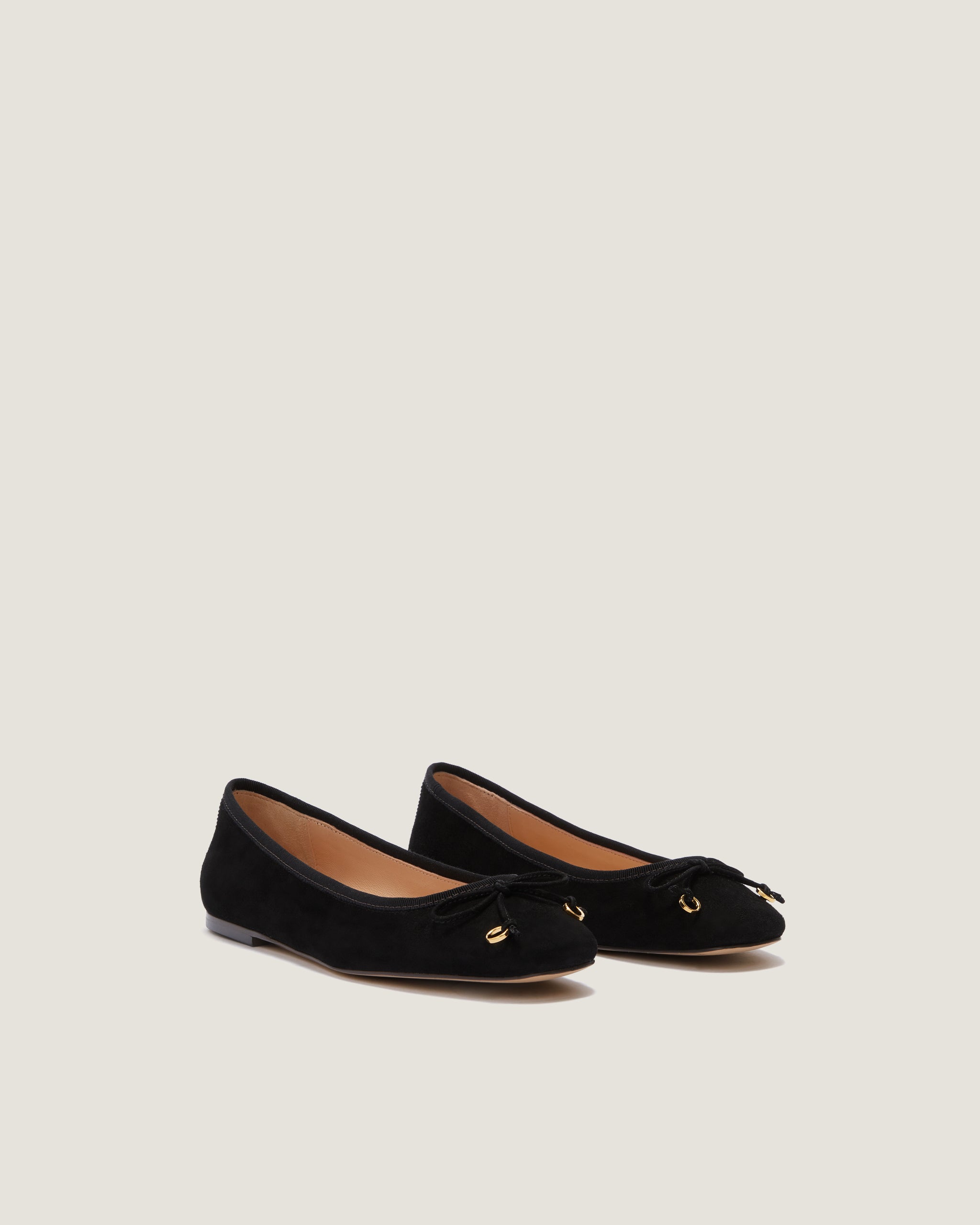 Lou is a classic ballerina flat in black suede adorned with a dainty bow. Soft and sophisticated, it features a seamless “sacchetto” construction, a square toe, and a padded insole. A modern and timeless essential for everyday wear.