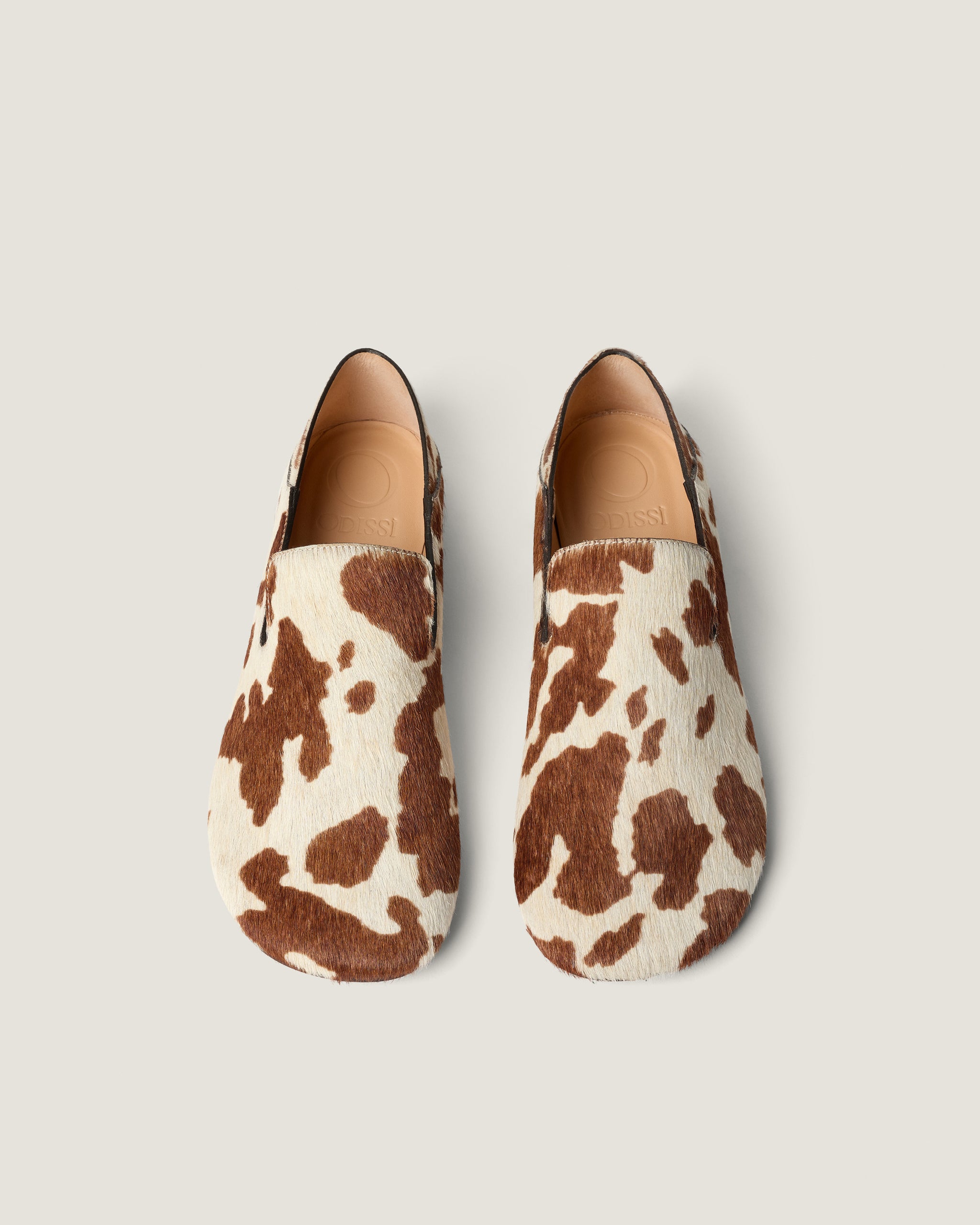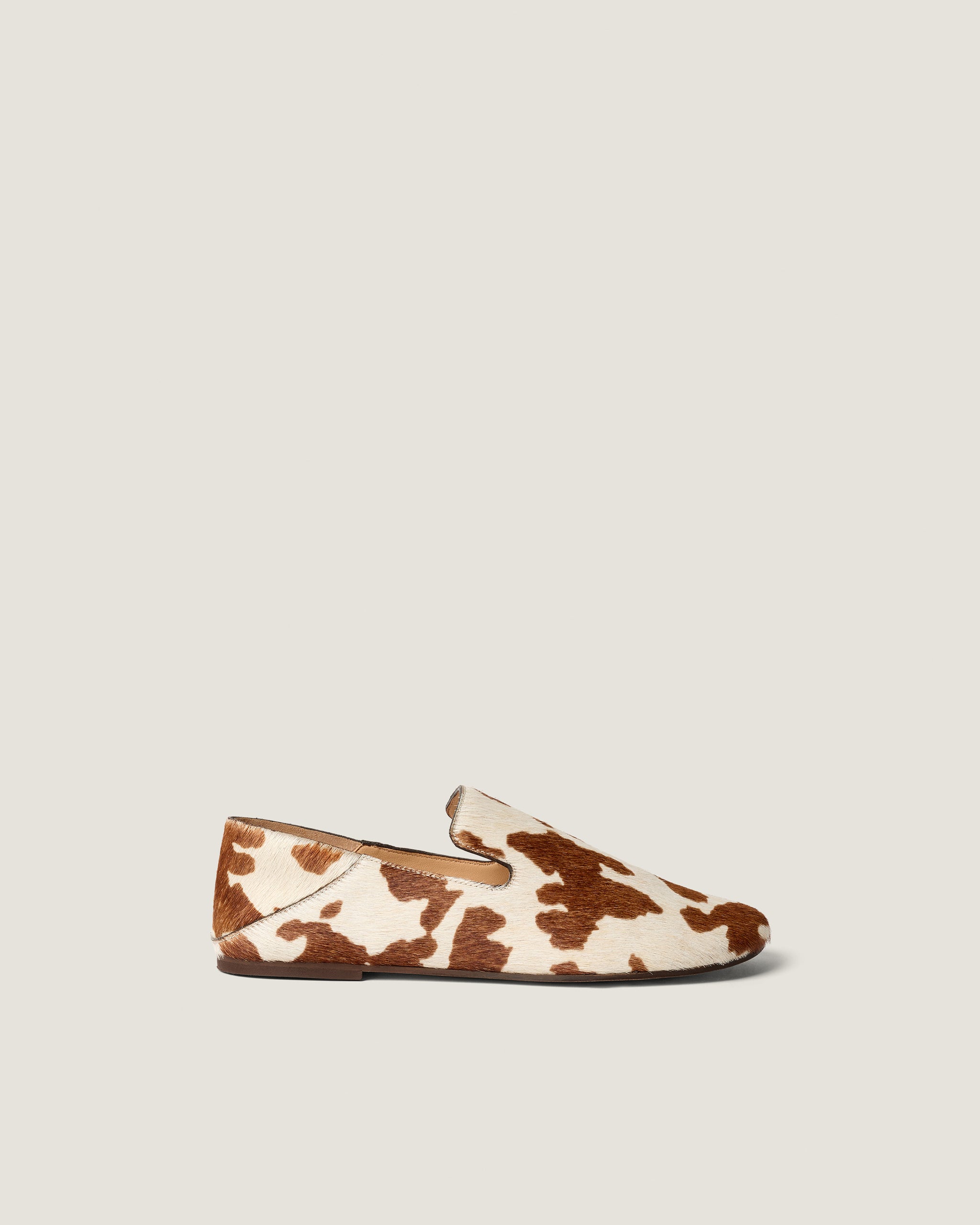 Soft slipper in cow printed hair calf